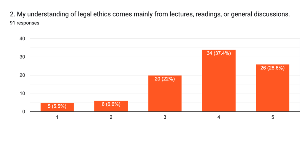 While most indicated that they had studied and understood ethical rules during the professional law course, a significant number did not feel fully prepared to navigate ethical dilemmas at the start of their careers.